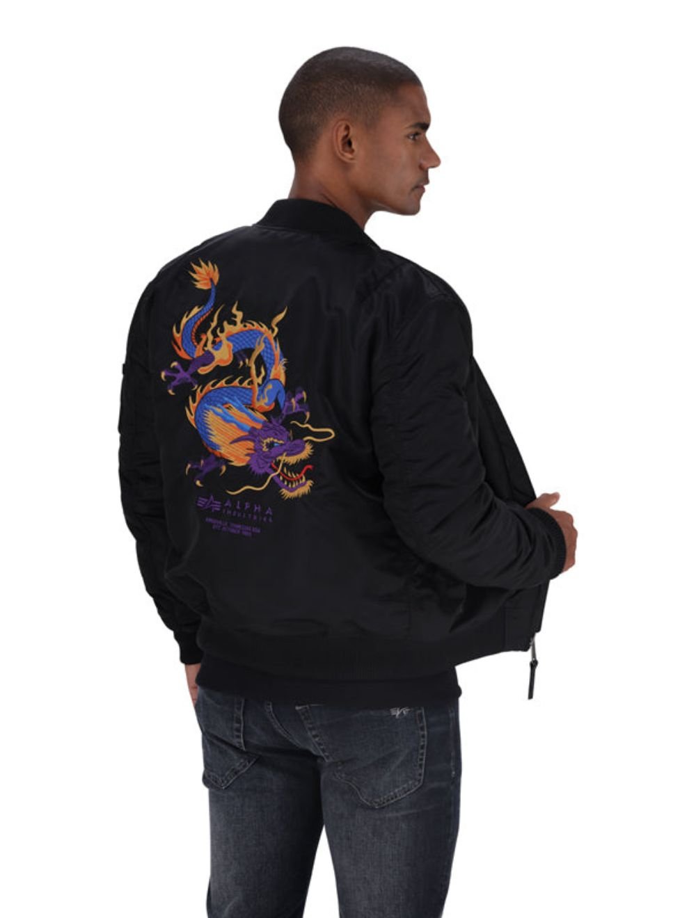 Unleash bold style with the Alpha Industries MA-1 Dragon Flight Jacket — where iconic military design meets fearless artistic expression. Now available at B.cause Apparel.